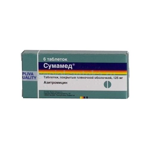 Сумамед - антибиотик группы макролидов - азалид. Обладает широким спектром противомикробного действия. Связывается с 50S-субъединицей рибосомы, подавляет биосинтез белка микроорганизмов. В высоких концентрациях оказывает бактерицидный эффект. Азитромицин активен в отношении грамположительных аэробных бактерий: Streptococcus pneumoniae, Streptococcus pyogenes, Streptococcus agalactiae, Streptococcus viridans, стрептококки групп C, F и G, Staphylococcus aureus, Staphylococcus epidermidis; некоторых грамположительных анаэробных бактерий: Clostridium perfringens. Азитромицин активен в отношении грамотрицательных аэробных бактерий: Haemophilus influenzae, Haemophilus parainfluenzae, Haemophilus ducreyi, Moraxella catarrhalis, Bordetella pertussis, Bordetella parapertussis, Neisseria gonorrhoeae, Neisseria meningitidis, Helicobacter pylori, Gardnerella vaginalis, Campylobacter jejuni. Азитромицин также активен в отношении внутриклеточных и других микроорганизмов: Mycobacterium avium complex, Legionella pneumophila, Chlamydia trachomatis, Chlamydia pneumoniae, Mycoplasma pneumoniae, Ureaplasma urealyticum, Listeria monocitogenes, Borrelia burgdorferi, Treponema pallidum. К препарату устойчивы грамположительные бактерии, резистентные к эритромицину.