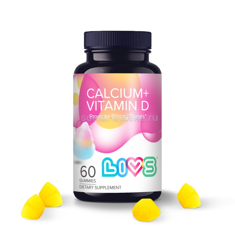 Содержание в 2 мармеладных пастилках: витамин D3 15 мкг (600 МЕ) (300*), кальций 170 мг (17*).