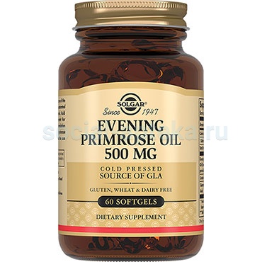 Масло примулы вечерней - это источник омега-6 жирных кислот, в частности гамма-линоленовой кислоты (ГЛК). Именно благодаря ГЛК масло примулы вечерней помогает смягчить такие неприятные проявления ПМС (предменструального синдрома), как болевые ощущения внизу живота, болезненность молочных желез, раздражительность и переменчивость настроения. Помимо этого, из ГЛК в нашем организме образуются противовоспалительные вещества. Поэтому дополнительный прием масла примулы вечерней позволит уменьшить зуд и воспаление кожи при различных кожных заболеваниях (дерматит, экзема и псориаз). Также масло примулы вечерней увлажняет кожу и делает ее менее восприимчивой к негативным факторам окружающей среды. Солгар «Масло примулы вечерней 500 мг» получено щадящим методом холодного прессования из семян примулы вечерней. В отличие от других способов производства, холодное прессование позволяет сохранить все полезные свойства примулы вечерней при производстве масла.