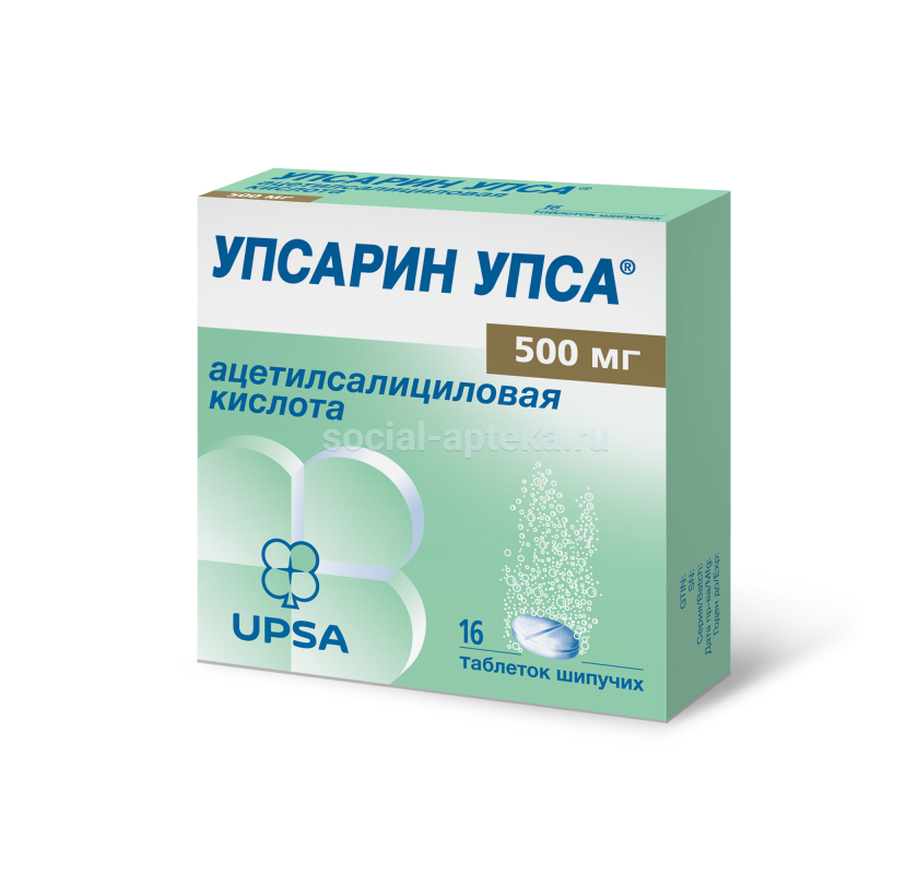 Фармакологическое действие - анальгезирующее, антиагрегационное, жаропонижающее, противовоспалительное.Нестероидный противовоспалительный препарат (НПВП).Оказывает противовоспалительное, анальгезирующее и жаропонижающее действие, связанное с подавлением циклооксигеназы 1 и 2, которая регулирует синтез простагландинов.Уменьшает агрегацию, адгезивность тромбоцитов и тромбообразование за счёт подавления синтеза тромбоксана А 2 в тромбоцитах.Антиагрегационный эффект сохраняется в течение 7 суток после однократного приёма (больше выражен у мужчин, чем у женщин).Растворяясь в воде, таблетка Упсарина Упса образует буферный раствор, который после приёма препарата поддерживает действующие вещества в растворённом виде, не позволяя им при контакте с кислой средой желудка переходить обратно в нерастворённую форму и осаждаться в виде твёрдых частиц на его стенках.В результате обеспечивается более быстрое и полное всасывание препарата, а также его лучшая переносимость по сравнению с обычными таблетками ацетилсалициловой кислоты.