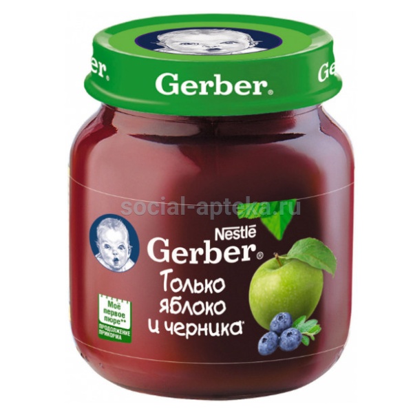 - Форма выпуска: Фруктовое пюре Gerber Яблоко и черника рекомендуется детям с 5 месяцев. Пюре богато витаминами и минеральными солями, пектином, способным выводить из организма токсические вещества. Содержит органические кислоты и клетчатку, благоприятно воздействующую на работу кишечника. Срок введения прикорма рекомендован в соответствии с методическими указаниями Минздрава РФ.