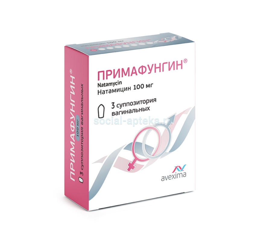 Примафунгин - противогрибковый полиеновый антибиотик из группы макролидов, имеющий широкий спектр действия. Оказывает фунгицидное действие. Натамицин связывает стеролы клеточных мембран, нарушая их целостность и функции, что приводит к гибели микроорганизмов. Активен в отношении большинства патогенных дрожжеподобных грибов (особенно Candida albicans), дерматофитов (Trichophyton, Microsporum, Epidermophyton), дрожжей (Torulopsis, Rhodotorula), других патогенных грибов (Aspergillus, Penicillium, Fusarium, Cephalosporium), а также в отношении некоторых простейших (трихомонад). Не влияет на грамположительные и грамотрицательные бактерии.Резистентность к натамицину в клинической практике не встречается. ФармакокинетикаНе оказывает системного действия, т.к. практически не всасывается с поверхности слизистых оболочек. Вагинальные суппозитории под действием температуры тела расплавляются, образуя объемно распространяющуюся пенистую массу, что способствует равномерному распределению активной субстанции по слизистой оболочке.