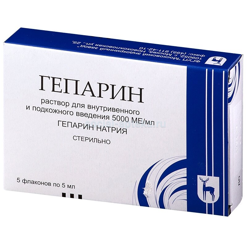 2. В начале лечения гепарином иногда может отмечаться преходящая тромбоцитопения с количеством тромбоцитов в диапазоне от 80 х 109/л до 150 х 109/л. Обычно данная ситуация не приводит к развитию осложнений и лечение гепарином может быть продолжено. В редких случаях может отмечаться тяжелая тромбоцитопения (синдром образования белого тромба), иногда с летальным исходом. Данное осложнение следует предполагать в случае снижения количества тромбоцитов ниже 80 х 109/л или более чем на 50% от исходного уровня, введение гепарина в таких случаях срочно прекращают. У пациентов с тяжелой тромбоцитопенией может развиться коагулопатия потребления (истощение запасов фибриногена). На фоне гепарин-индуцированной тромбоцитопении: некроз кожи, артериальный тромбоз, сопровождающийся развитием гангрены, инфаркта миокарда, инсульта.