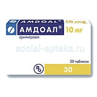 Фармгруппа: Антипсихотический препарат (нейролептик). Фармдействие: Амдоал - антипсихотический препарат (нейролептик). Считается, что терапевтическое действие арипипразола при шизофрении обусловлено сочетанием частичной агонистической активности в отношении D2-допаминовых и 5НТ1а-серотониновых рецепторов и антагонистической активностью в отношении 5НТ2-серотониновых рецепторов. Арипипразол обладает высоким сродством in vitro к D2- и D3-допаминовым рецепторам, 5НТ1а- и 5НТ2а-серотониновым рецепторам и умеренным сродством к D4-допаминовым, 5НТ2с- и 5НТ7-серотониновым, α1-адренорецепторам и Н1-гистаминовым рецепторам. Арипипразол характеризуется также умеренным сродством к участкам обратного захвата серотонина и отсутствием аффинности к мускариновым рецепторам. В экспериментах на животных арипипразол проявлял антагонизм в отношении допаминергической гиперактивности и агонизм в отношении допаминергической гипоактивности. Взаимодействием не только с допаминовыми и серотониновыми рецепторами объясняются некоторые клинические эффекты арипипразола. Фармакокинетика: Арипипразол быстро всасывается после приема внутрь. Прием пищи не влияет на биодоступность арипипразола. Абсолютная биодоступность при приеме внутрь составляет 87%. Cmax арипипразола в плазме достигается через 3-5 ч. Css достигается через 14 дней. Арипипразол интенсивно распределяется в тканях, кажущийся Vd - 4.9 л/кг. Показатели фармакокинетики арипипразола в равновесном состоянии пропорциональны дозе. При терапевтической концентрации более 99% арипипразола связывается с белками плазмы, главным образом, с альбумином. Главный метаболит арипипразола - дегидроарипипразол, обладает такой же аффинностью к D2-допаминовым рецепторам, как и арипипразол. Не отмечено суточных колебаний распределения арипипразола и его метаболита дегидроарипипразола. AUC в равновесном состоянии дегидроарипипразола составляет 39% от AUC арипипразола в плазме крови. Незначительно подвергается пресистемному метаболизму. Арипипразол является основным компонентом препарата в плазме крови. Арипипразол метаболизируется в печени путем дегидрирования, гидроксилирования и N-дезалкилирования. In vitro дегидрирование и гидроксилирование арипипразола происходит с участием изоферментов CYP3A4 и CYP2D6, а N-дезалкилирование - с участием изофермента CYP3A4. Средний T1/2 составляет примерно 75 ч у быстрых метаболизаторов изофермента CYP2D6 и примерно 146 ч у медленных метаболизаторов. Общий клиренс арипипразола - 0.7 мл/мин/кг, главным образом, за счет выведения печенью. После однократного приема дозы меченого 14С арипипразола, примерно 27% дозы было выделено почками и примерно 60% через кишечник. Менее 1% неизмененного арипипразола определяется в моче и примерно 18% принятой дозы в неизмененном виде выводится через кишечник. Фармакокинетика в особых клинических случаях: С учетом поправки на массу тела фармакокинетика арипипразола и дегидроарипипразола у подростков 13-17 лет соответствовала таковой у взрослых. Не выявлено различий фармакокинетики арипипразола у пожилых и взрослых здоровых добровольцев. Также не выявлено влияния возраста на фармакокинетику у пациентов с шизофренией. Отсутствуют различия фармакокинетики у здоровых мужчин и женщин. Также не выявлено влияния пола на фармакокинетику арипипразола у пациентов с ш