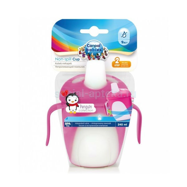 Поильник-непроливайка "Penguins" от производителя товаров для малышей Canpol babies удобен для детей от 9 месяцев. Он изготовлен из безопасного полипропилена высокой очистки, а значит, подходит для самых маленьких. Ручки по бокам поильника помогут малышу удержать его. Небольшие отверстия пропускают оптимальное количество жидкости, благодаря чему малыш при питье не подавится. Броская расцветка привлечет внимание ребенка. Посуда Canpol babies подарит малышу комфорт при питье, а родителям - спокойствие за кроху.