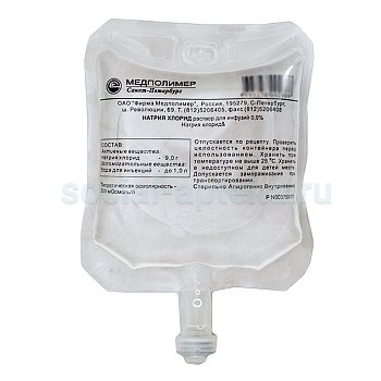 При проведении любой инфузии необходимо наблюдать за состоянием пациента, за клиническими биологическими показателями, особенно важно оценивать электролиты плазмы крови. В организме детей из-за незрелости функции почек может замедляться экскреция натрия. Поэтому у таких пациентов повторные инфузии следует проводить только после определения концентрации натрия в плазме крови. При появлении реакций гиперчувствительности или инфузионных реакций инфузию следует немедленно прекратить и принять необходимые терапевтические меры по показаниям. В зависимости от объема и скорости инфузии на фоне внутривенного введения препарата возможен риск развития гиперволемии и (или) перегрузки растворенными веществами и нарушений баланса электролитов. У пациентов с почечной недостаточностью препарат следует применять с особой осторожностью или не применять совсем. Применение препарата у таких пациентов может привести к задержке натрия. Применять только прозрачный раствор, без видимых включений и, если упаковка не повреждена. Вводить непосредственно после подключения к инфузионной системе. Раствор следует вводить с применением стерильного оборудования с соблюдением правил асептики и антисептики. Во избежание попадания воздуха в инфузионную систему ее следует заполнить раствором, выпустив остаточный воздух из контейнера полностью. Как и для всех парентеральных растворов, совместимость добавляемых веществ с раствором должна определяться перед растворением. Не должны применяться с раствором натрия хлорида 0,9% препараты, известные как несовместимые с ним. Определять совместимость добавляемых лекарственных веществ с раствором натрия хлорида 0,9% должен врач, проверив возможное изменение окраски и/ или появления осадка, нерастворимых комплексов или кристаллов. Перед добавлением необходимо определить, является ли добавляемое вещество растворимым и стабильным в воде при уровне pH, что и у раствора натрия хлорида 0,9%. При добавлении препарата необходимо определить изотоничность полученного раствора до введения. Перед добавлением в раствор препаратов их необходимо тщательно перемешать с соблюдением правил асептики. Приготовленный раствор следует ввести сразу после приготовления, не хранить! Следует утилизировать каждую неиспользованную дозу.