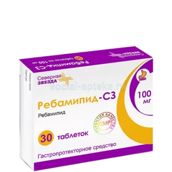 действующее вещество: ребамипид- 100 мг;