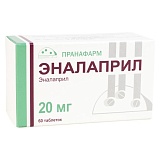 Эналаприл - антигипертензивный препарат из группы ингибиторов АПФ. Эналаприл является «пролекарством»: в результате его гидролиза образуется эналаприлат, который и ингибирует АПФ. Механизм его действия связан с уменьшением образования из ангиотензина I ангиотензина II, снижение содержания которого ведет к прямому уменьшению выделения альдостерона. При этом понижается общее периферическое сосудистое сопротивление, систолическое и диастолическое АД, пост- и преднагрузка на миокард.Расширяет артерии в большей степени, чем вены, при этом рефлекторного повышения частоты сердечных сокращений не отмечается.Гипотензивный эффект более выражен при высоком уровне ренина плазмы, чем при нормальном или сниженном его уровне. Снижение АД в терапевтических пределах не оказывает влияния на мозговое кровообращение, кровоток в сосудах мозга поддерживается на достаточном уровне и на фоне сниженного артериального давления. Усиливает коронарный и почечный кровоток.При длительном применении уменьшается гипертрофия левого желудочка миокарда и миоцитов стенок артерий резистивного типа, предотвращает прогрессирование сердечной недостаточности и замедляет развитие дилатации левого желудочка. Улучшает кровоснабжение ишемизированного миокарда. Снижает агрегацию тромбоцитов. Обладает некоторым диуретическим эффектом.Время наступления гипотензивного эффекта при приеме внутрь - 1 ч, достигает максимума через 4-6 ч и сохраняется до 24 ч. У некоторых больных для достижения оптимального уровня АД необходима терапия на протяжении нескольких недель. При сердечной недостаточности заметный клинический эффект наблюдается при длительном применении - 6 мес и более.