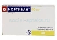 Нортиван - периферический вазодилататор, оказывает гипотензивное действие. Специфический блокатор AT1 рецепторов ангиотензина II, не ингибирует АПФ; не влияет на содержание общего холестерина, ТГ, глюкозы и мочевой кислоты в крови. Начало эффекта отмечается через 2 ч после приема, максимум - через 4-6 ч; продолжительность действия - более 24 ч. После регулярного приема максимальное снижение АД наступает через 2-4 нед. Отсутствует синдром "отмены" при внезапном прекращении приема.