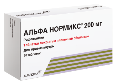 Клинические данные свидетельствуют, что препарат Альфа Нормикс® неэффективен при лечении кишечных инфекций, вызванных Campylobacter jejuni, Salmonella spp., Shigella spp, которые вызывают частую диарею, лихорадку, выделение крови со стулом. Препарат Альфа Нормикс® не рекомендуется применять, если у пациентов наблюдаются лихорадка и жидкий стул с кровью. Препарат Альфа Нормикс® следует отменить, если симптомы диареи усиливаются или сохраняются более 48 часов. Следует назначить другую антибактериальную терапию. Лечение диареи путешественника не должно превышать 3 дней. Известно, что Clostridium difficile-ассоциированная диарея, может развиться при применении почти всех антибактериальных средств, включая препарат Альфа Нормикс®. Потенциальную взаимосвязь препарата Альфа Нормикс® с развитием Clostridium difficile-ассоциированной диареи и псевдомембранозного колита нельзя исключить. Опыт применения рифаксимина совместно с другими рифамицинами отсутствует. Следует соблюдать осторожность при сопутствующем приёме рифаксимина и ингибитора Р-гликопротеина, такого как циклоспорин. Пациентов необходимо предупредить, что, несмотря на незначительное всасывание рифаксимина (менее 1 %), он может вызвать окрашивание мочи в красноватый цвет: это обусловлено активным веществом рифаксимином, который, как и большинство антибиотиков этого ряда (рифамицины), имеет красновато- оранжевую окраску. При развитии суперинфекции микроорганизмами, нечувствительными к рифаксимину, приём препарата Альфа Нормикс® следует прекратить и назначить соответствующую терапию. Вследствие влияния препарата Альфа Нормикс® на кишечную флору, эффективность пероральных контрацептивов, содержащих эстрогены, может снизиться после его приема. Рекомендуется применять дополнительные меры контрацепции при приёме препарата Альфа Нормикс®, особенно, если содержание эстрогенов в пероральных контрацептивах менее 50 мкг. Приём препарата Альфа Нормикс® возможен не ранее, чем через 2 часа после приёма активированного угля. Гранулы для приготовления суспензии для приёма внутрь содержат сахарозу, поэтому препарат Альфа Нормикс® в данной лекарственной форме нельзя применять при наследственной непереносимости фруктозы, нарушении всасывания глюкозы-галактозы, недостаточности сахаразы-изомальтазы.