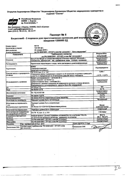 1 флакон порошка содержит:Активные вещества: смесь бензатин бензилпенициллина, бензилпенициллина натриевой (или калиевой) соли и бензилпенициллина новокаиновой соли 1200 тыс. ЕД.