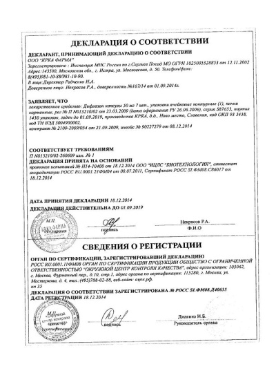 Фармгруппа: противогрибковое средство. Фармдействие: Дифлазон - противогрибковый препарат. Флуконазол, представитель класса триазольных противогрибковых средств, является мощным селективным ингибитором грибкового фермента 14-α-деметилазы. Препарат препятствует переходу ланостерола в эргостерол - основной компонент клеточных мембран грибов. Активен в отношении возбудителей оппортунистических микозов, в т.ч. вызванных Candida spp. (Candida albicans, Candida tropicalis), Cryptococcus neoformans, Microsporum spp., Trichophyton spp. Показана также активность флуконазола на моделях эндемичных микозов, включая инфекции, вызванные Blastomyces dermatitidis, Coccidioides immitis и Histoplasma capsulatum. Фармакокинетика: Всасывание После приема внутрь флуконазол хорошо абсорбируется. Биодоступность составляет 90%. После приема препарата внутрь натощак в дозе 150 мг Cmax составляет 90% от содержания в плазме при в/в введении препарата в дозе 2.5-3.5 мг/л. Одновременный прием пищи не влияет на абсорбцию при приеме внутрь. Cmax достигается через 0.5-1.5 ч после приема флуконазола. Концентрация в плазме прямо пропорциональна принятой дозе. Распределение 90% Css достигается к 4-5 дню лечения препаратом (при приеме 1 раз/сут.). Введение ударной дозы (в 1-й день), в 2 раза превышающей среднюю суточную дозу, позволяет достичь 90% уровень Css ко 2 дню. Кажущийся Vd приближается к общему содержанию воды в организме. Связывание с белками - 11-12%. Флуконазол хорошо проникает во все жидкости организма, включая спинномозговую жидкость. Концентрации флуконазола в слюне и мокроте аналогичны его уровню в плазме. У больных с грибковым менингитом уровни флуконазола в спинномозговой жидкости составляют около 80% от уровней его в плазме. В роговом слое, эпидермисе, дерме и потовой жидкости достигаются высокие концентрации, которые превышают сывороточные. Метаболизм Менее 5% флуконазола метаболизируется при "первом прохождении" через печень. Метаболитов флуконазола в крови не обнаружено. Выведение Длительный T1/2 позволяет применять однократную дозу препарата для лечения влагалищного кандидоза и обеспечивает прием препарата 1 раз/сут. при других показаниях. Флуконазол выводится в основном почками; примерно 80% введенной дозы выводится почками в неизмененном виде. Клиренс флуконазола пропорционален клиренсу креатинина.