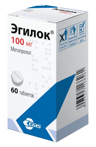 Эгилок - кардиоселективный блокатор b-адренорецепторов, не обладающий внутренней симпатомиметической и мембраностабилизирующей активностью. Оказывает антигипертензивное, антиангинальное и антиаритмическое действие. Блокируя в невысоких дозах b1-адренорецепторы сердца, уменьшает стимулированное катехоламинами образование цАМФ из АТФ, снижает внутриклеточный ток Ca2+, оказывает отрицательное хроно-, дромо-, батмо- и инотропное действие (урежает ЧСС, угнетает проводимость и возбудимость, снижает сократимость миокарда). ОПСС в начале применения препарата (в первые 24 ч после перорального приема) увеличивается, через 1-3 дня применения возвращается к исходному уровню, при дальнейшем применении - снижается. Антигипертензивное действие обусловлено уменьшением сердечного выброса и синтеза ренина, угнетением активности ренин-ангиотензиновой системы и ЦНС, восстановлением чувствительности барорецепторов дуги аорты (не происходит усиления их активности в ответ на снижение АД) и в итоге уменьшением периферических симпатических влияний. Снижает повышенное АД в покое, при физическом напряжении и стрессе. АД снижается через 15 мин, максимально - через 2 ч; действие сохраняется в течение 6 ч. Стабильное снижение наблюдается после нескольких недель регулярного приема. Антиангинальный эффект определяется снижением потребности миокарда в кислороде в результате уменьшения ЧСС (удлинение диастолы и улучшение перфузии миокарда) и сократимости, а также снижением чувствительности миокарда к воздействию симпатической иннервации. Уменьшает частоту и тяжесть приступов стенокардии и повышает переносимость физической нагрузки. Антиаритмическое действие проявляется за счет уменьшения автоматизма синусового узла, урежения ЧСС, замедления AV-проводимости, снижения сократимости и возбудимости миокарда, сердечного выброса. При суправентрикулярной тахикардии, мерцании предсердий, синусовой тахикардии при функциональных заболеваниях сердца и гипертиреозе урежает ЧСС и даже может привести к восстановлению синусового ритма. Предупреждает развитие мигрени. При многолетнем приеме снижает содержание холестерина в крови. При применении в средних терапевтических дозах оказывает менее выраженное воздействие на органы, содержащие b2-адренорецепторы (поджелудочная железа, скелетные мышцы, гладкая мускулатура периферических артерий, бронхов, матки) и на углеводный обмен. При применении в высоких дозах (более 100 мг/сут) оказывает блокирующий эффект на оба подтипа b-адренорецепторов.