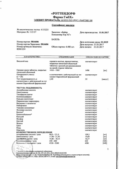 Сертификаты Элевит Пронаталь