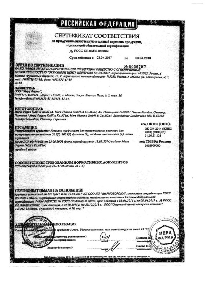 Препарат не используют, если после растворения полученный раствор является непрозрачным или содержит видимые хлопья и частицы.