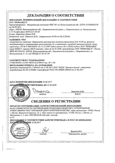 Раствор для местного применения 0,01%,Флаконы полиэтиленовые 150 мл