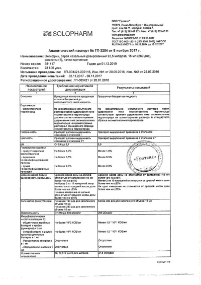 1 мл препарата содержит. Активное вещество: оксиметазолина гидрохлорид - 0,1 мг. Вспомогательные вещества: лимонная кислота безводная - 0,557 мг, натрия цитрата дигидрат - 3,823 мг, глицерол безводный - 21,165 мг, вода для инъекций - до 1 мл.