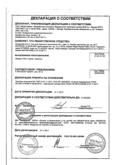 Инструкция на Репарил- гель Н