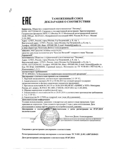 Масляный экстракт листа мяты перечной, почек сосны, плодов шиповника, травы полыни горькой, травы тысячелистника, травы зверобоя, травы чистотела, цветков ноготков, цветков ромашки, плодов фенхеля, плодов тмина, травы чабреца; камфора, масло мяты перечной и фенхеля.